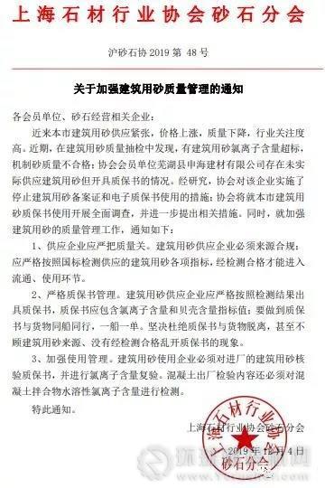 上海砂石協(xié)會(huì)發(fā)布《關(guān)于加強(qiáng)建筑用砂質(zhì)量管理的通知》